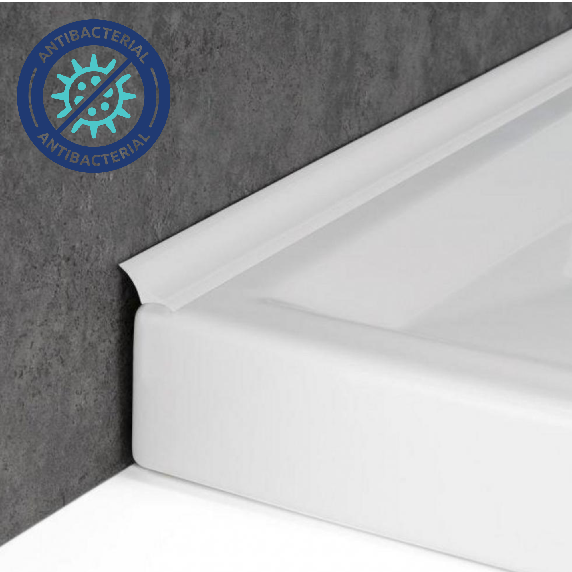 Listwa narożna wewnętrzna Sanibord wykonana jest z antybakteryjnego aluminium. Doskonale sprawdzi się jaako zabezpieczenie pomiędzy ścianą a wanną lub brodzikiem. Ta aluminiowa listwa do łazienki gwarantuje również wysoki poziom higieny. Wykonana jest w certyfikowanej technologii antybakteryjnej (zgodnie z surowym testem uznanym na szczeblu międzynarodowym JIS Z 2801:2000), która umożliwia ograniczenie liczby bakterii uznanych za najgroźniejsze aż o 99%, zapewniając tym samym trwały wysoki poziom higieny.