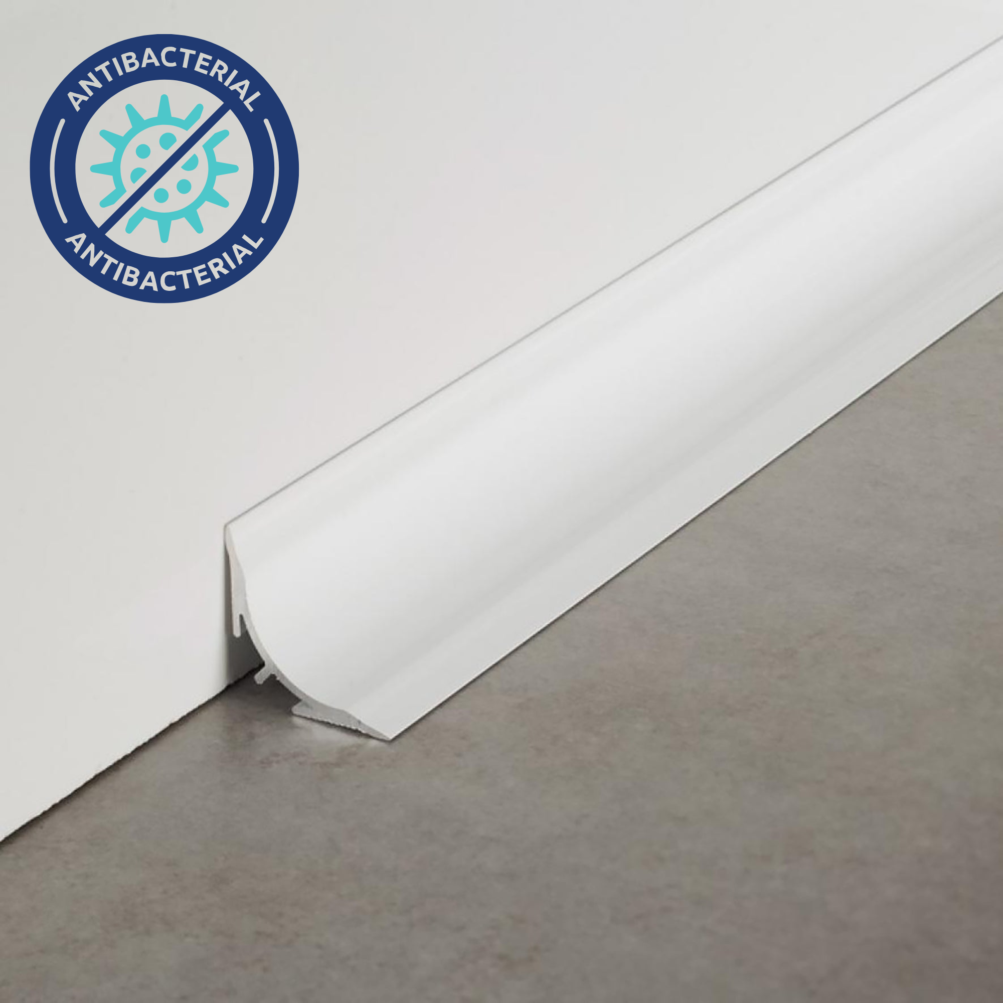 Listwa narożna wewnętrzna Proround BLAH/ wykonana jest z aluminium lakierowanego w kolorze białym. Doskonale sprawdzi się na styku ściany i podłogi w każdej łazience, ale również w pomieszczeniach o wysokim poziomie higieny. Ta listwa do łazienki spełnia najwyższe standardy higieniczne. Wykonana jest w certyfikowanej technologii antybakteryjnej (zgodnie z surowym testem uznanym na szczeblu międzynarodowym JIS Z 2801:2000), która umożliwia ograniczenie liczby bakterii uznanych za najgroźniejsze aż o 99%.